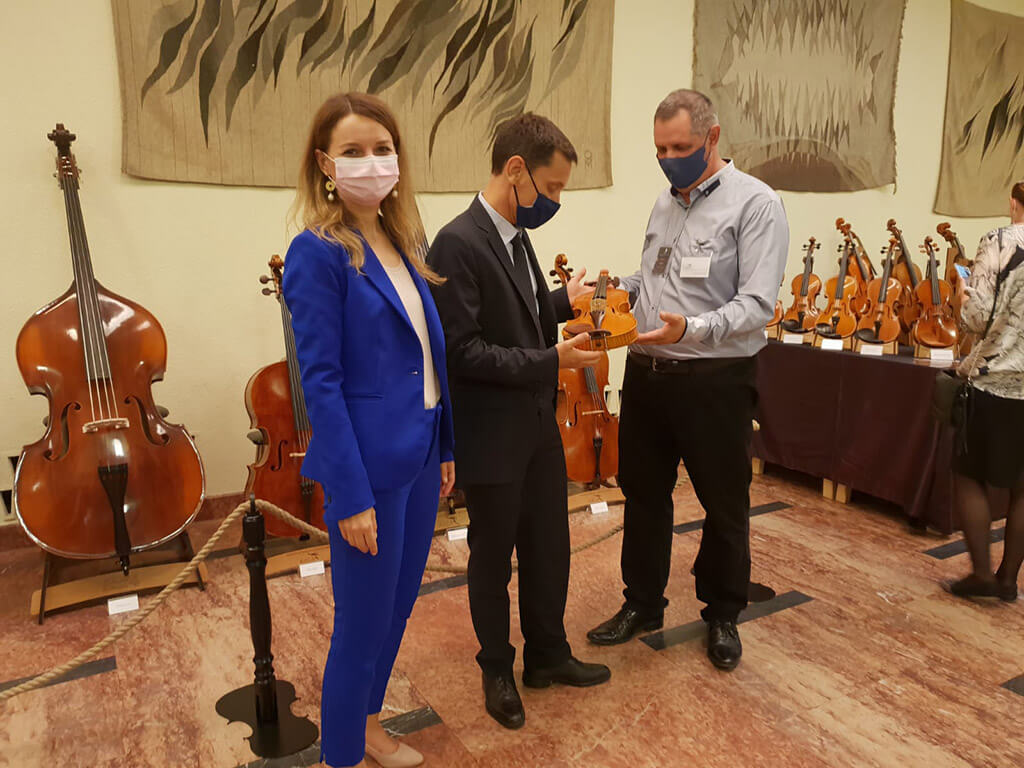 În cele două standuri au fost expuse 50 de instrumente produse la Reghin: viori, viole, violoncele, contrabași cu 4 și 5 corzi, contrabas baroc, chitare și arcușe realizate la cele mai înalte standarde de calitate.